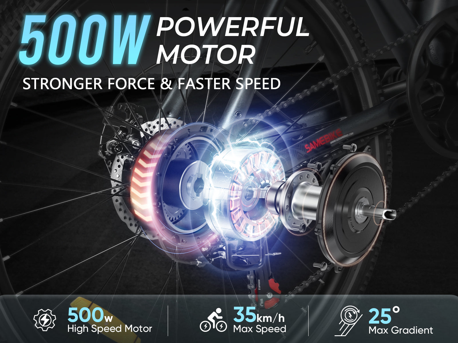 Although SAMEBIKE electric bikes are designed to handle wet conditions, please keep in mind that riding in heavy rain may affect battery life and reduce traction, so please be careful and try to avoid riding in the rain. As for the waterproof rating, the entire bike meets the IP54 standard, the motor, battery and display is the IP64.